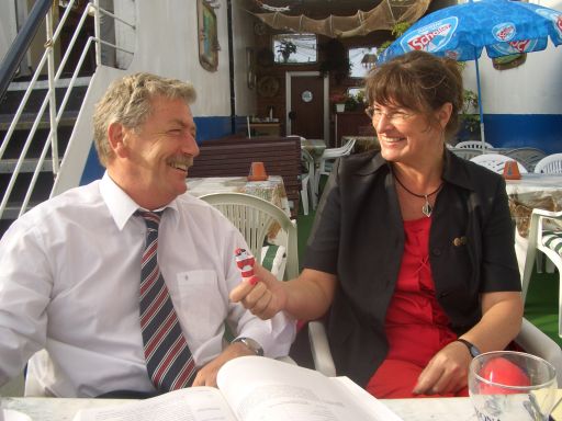 In Tarmstedt trifft sich der Norden - das Motto stimmt Jahr für Jahr wieder. Wer sich über landwirtschaftliche Entwicklungen informieren oder einfach nur über die hoch interessante Ausstellung bummeln will, trifft 99.999 andere Interessierte - darunter ganz sicher viele alte Bekannte. Margrit Wetzel nutzte die Gelegenheit, an alte Kontakte anzuknüpfen: man erkennt sich doch noch wieder, auch wenn einige Jahre zwischen "Wahlkreis alt" und "Wahlkreis neu" liegen. |
