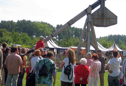 Eine Blide ist eine Steinschleuder aus dem Mittelalter, mit der bis zu 50 kg schwere Steine bis zu 500 m weit geschleudert werden konnten. Beckdorf hat seine eigene Blide (50 kg/240m) konstruiert und nachgebaut, immerhin wurde damit im Mittelalter die Dannsse-Burg des Isern Hinnerk zerstört. Großes Kompliment den Kranzbindern, die ihre Gemeinde mit vielen super gut besuchten spannenden Festen bereichern! |