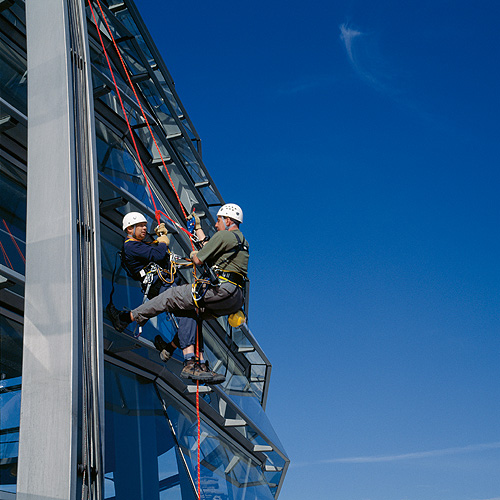 Die Häuser des Bundestages stellen, sicherheitstechnisch betrachtet, eine große Herausforderung dar. „Wir mussten selbst Lösungsansätze erarbeiten, wie jemandem schnell geholfen werden kann, der in großen Höhen und in einer der Befahranlagen in Not gerät. Bis jetzt hatten wir noch keinen Ernstfall, muss auch nicht sein. Aber wir wollen natürlich bestens vorbereitet sein, wenn es doch mal dazu kommt. Wenn jemand im Gurt hängt, muss er innerhalb von fünfzehn Minuten gerettet werden, sonst besteht die Gefahr eines Hängetraumas“, erklärt Dirk Stavorinus.