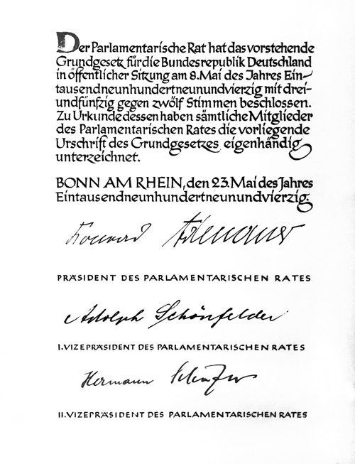 Ratifizierung und Verkündung des Grundgesetzes. Da die