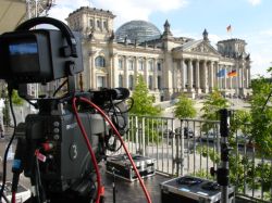 eine Fernsehkamera steht vor dem